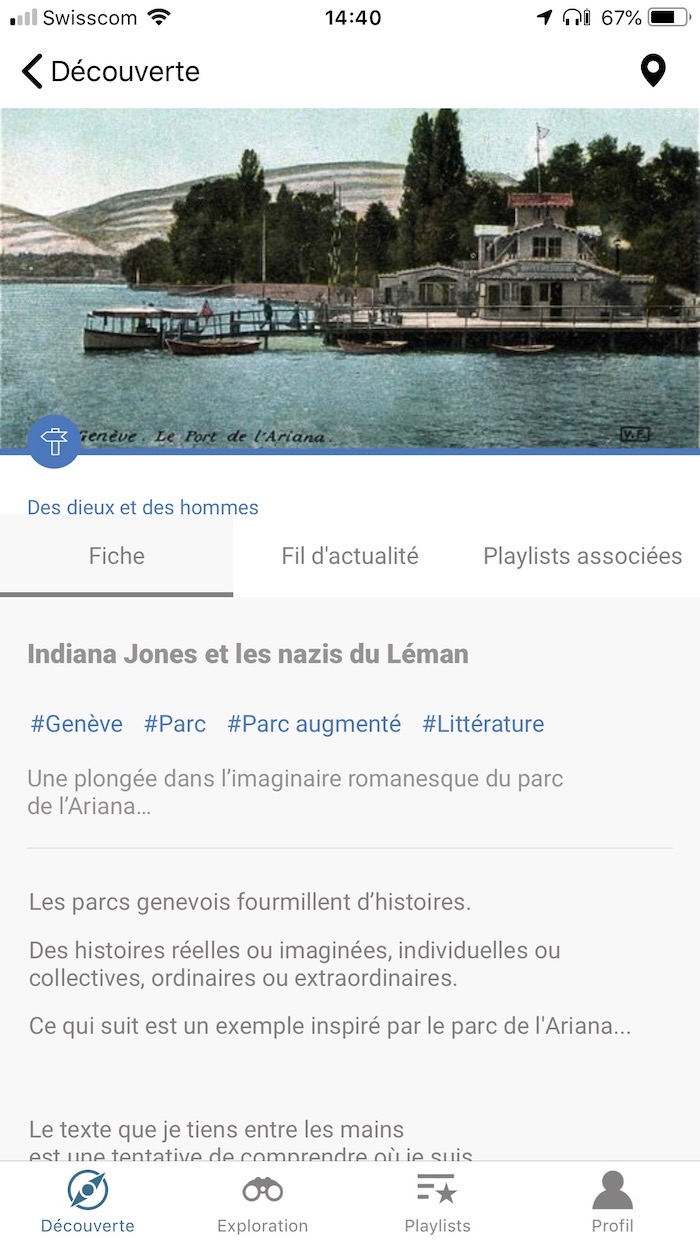 Ces histoires sont liées les unes aux autres, comme le sont les rues et routes. Par des thématiques, des associations d’idées, ou des personnages et des objets, l’utilisateur peut librement explorer la mémoire genevoise partagée, tout en étant “protégé” par une cohérence éditoriale.